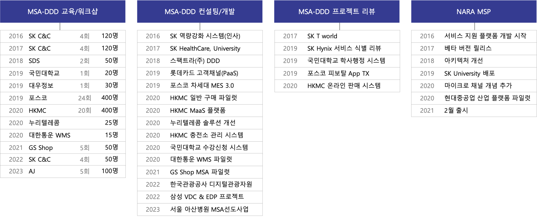 - 개요 : 기업의 SW 개발팀 개발자를 대상으로 MSA 기반 개발 기술 교육을 진행함