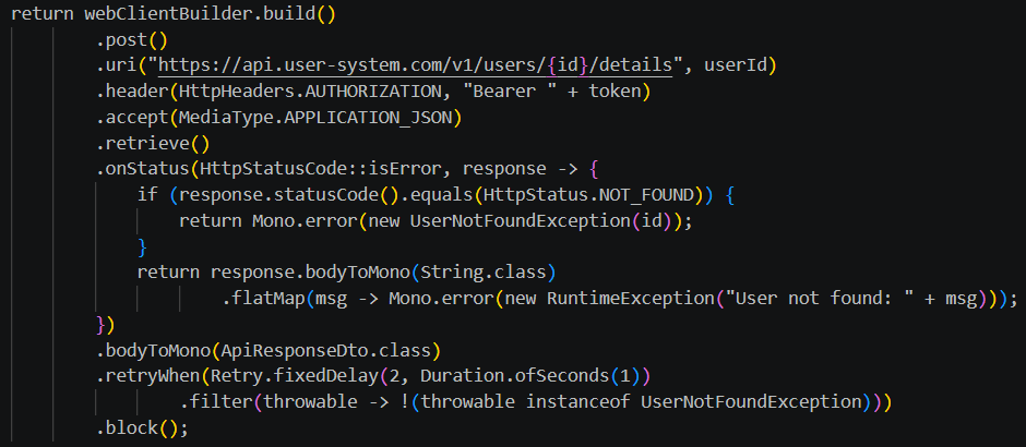 과거 외부 API 호출 시 RestTemplate를 사용했었고, 한 기업에서 만나 본 외부 API 호출 코드는 각기 다른 개발자들의 특성이 묻어 있는 다양한 WebClient 코드였습니다. 다양한 반복 코드와 비동기/동기를 넘나드는 복잡함은 코드 분석에 꽤 많은 시간을 소비하게 만들었습니다.