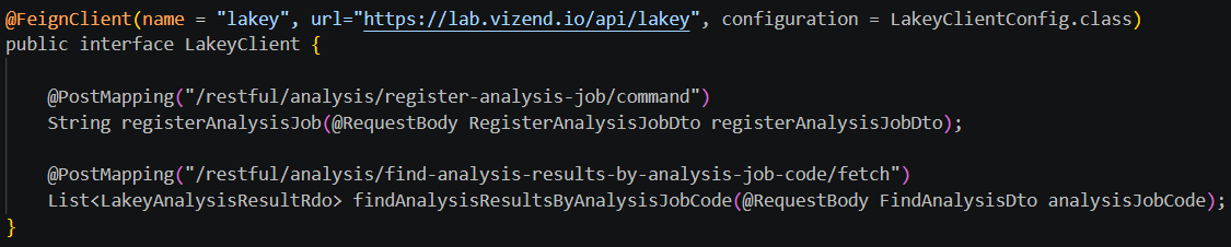 Feign Client 코드 → Endpoint와 Request/Response 객체 정의만 하면 끝